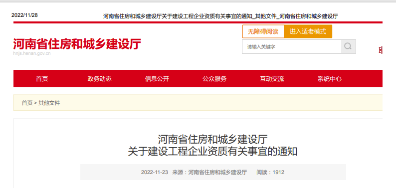 • 河南省住房城鄉(xiāng)建設廳發(fā)文:建設工程企業(yè)資質(zhì)有效期延期至2022年12月31日!